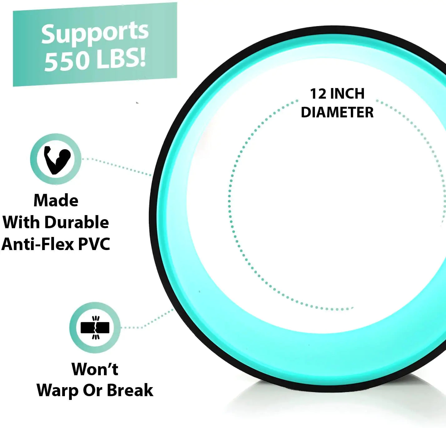 The Classic Yoga Wheel is the perfect solution for those suffering from back pain and body stiffness. Just a few minutes each day can help provide relief to sore, tight muscles. The wheel can also be used to help relieve tension and stretch the back, neck, arms, chest, and legs. Made from durable PVC with an anti-slip surface, the wheel is built to support over 500lbs. Don't let back pain hold you back any longer. Order the Classic Yoga Wheel today!